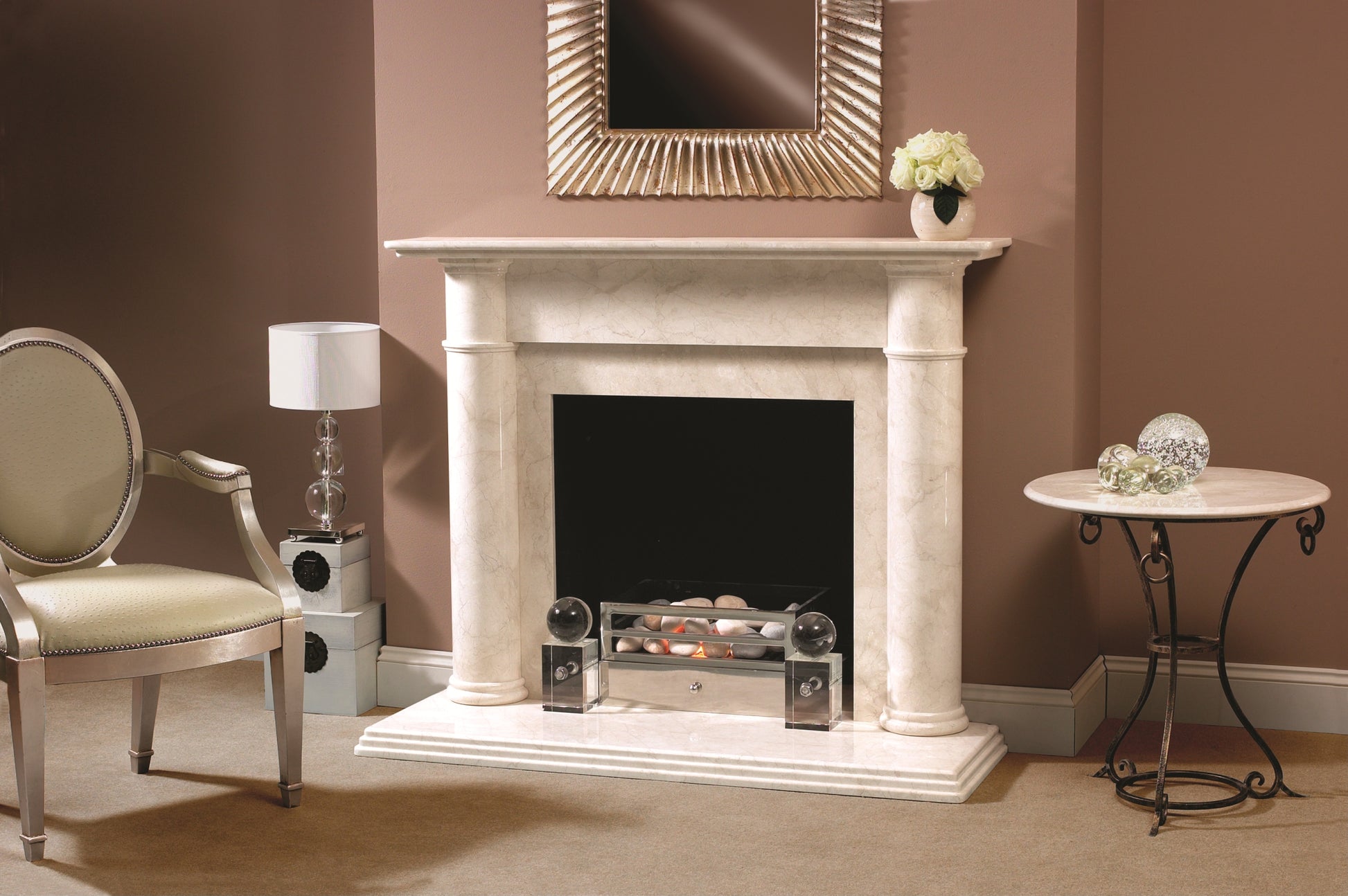 Title: Elevate your living space with the Giovanna in Bianco Persiano Mantel by Montpellier. Crafted from natural stone marble, this exquisite fireplace surround combines timeless elegance with modern sophistication. Redefine your home's aesthetic with this luxurious centerpiece.